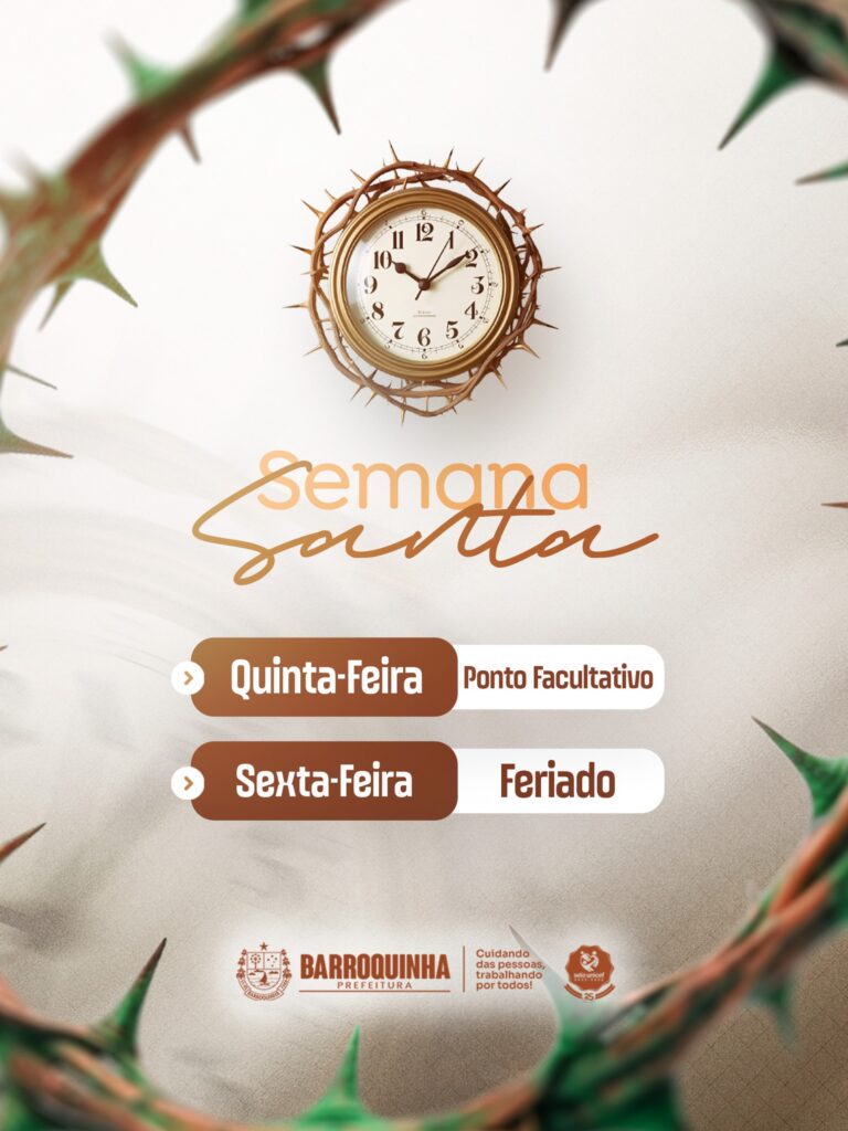 A Prefeitura de Barroquinha informa à população o funcionamento das atividades durante o período da Semana Santa.